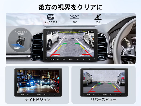 · リアビューカメラ: AC-HD01LR(付属)を接続すると、720P AHDリアビュー機能が満載!駐車ガイドラインが表示され、140°の広視野角設計で、不安なく駐車できます