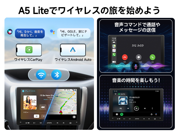 · ワイヤレスCarPlay & Android Auto: 有線/ワイヤレスのCarPlayとAndroid Autoの両方をサポート!ダッシュボードから直接、ナビゲーションや音楽ストリーミング、メッセージング、通話が可能。S-ir-iやGGLEアシスタントを使って、快適なドライブをお楽しみください