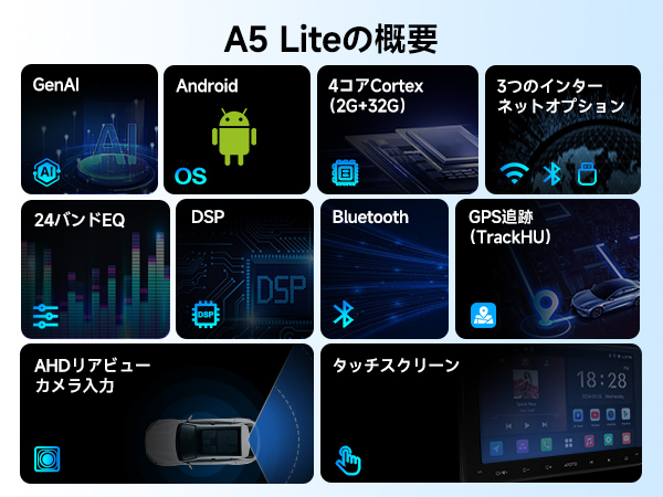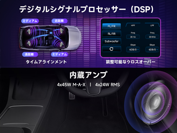 · DSPのアップグレード: A5 Lite Androidカーナビ2din、内蔵アンプ(M-a-x 4x45W、RMS 4x24W)と9つのプリセットを備えた24バンドEQを搭載。デジタル・シグナル・プロセッサー(DSP)で好みに合わせてサウンドを調整し、あなただけのリスニング体験を