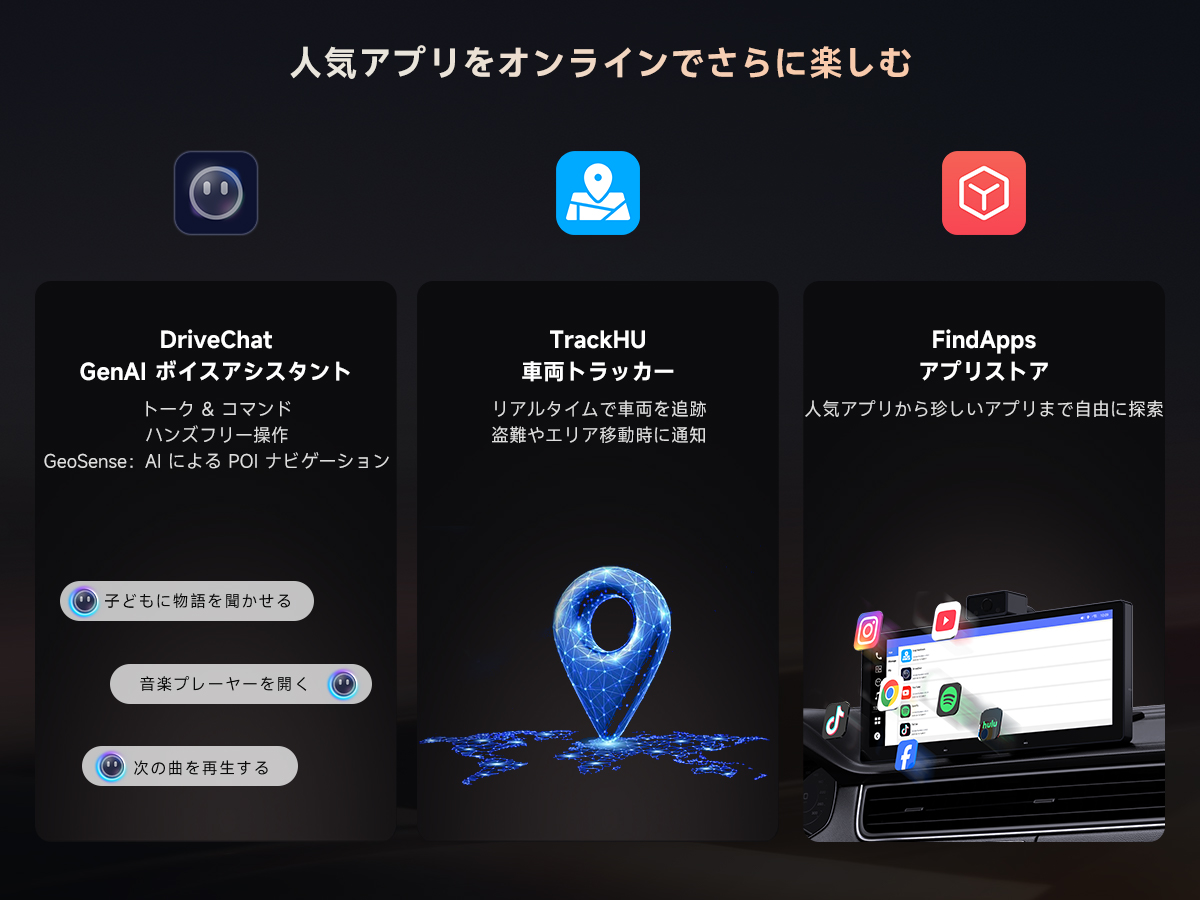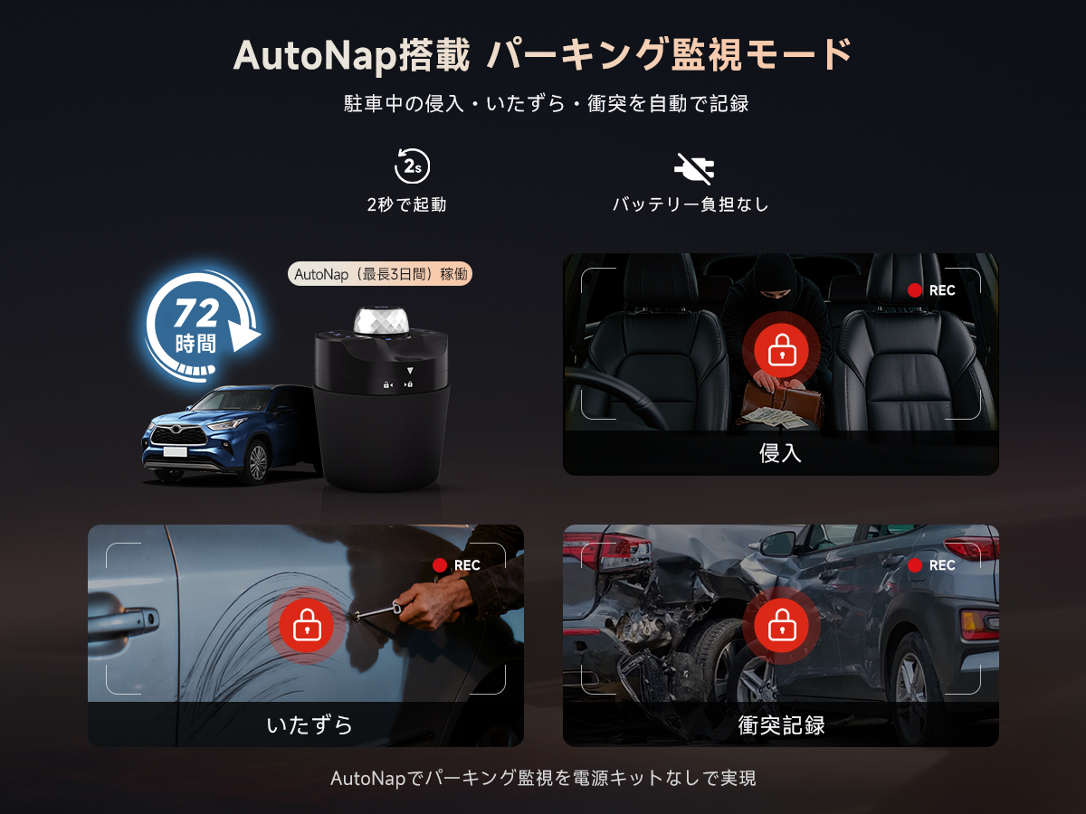 あなたの車をスマートにアップグレード。駐車監視からAIアシスタントまで、すべてを一台で。